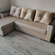 Угловой диван с расположением угла с левой стороны. Внешне напоминает английскую букву L. Механизм трансформации находится в длинной стороне. Модель занимает две стены, можно использовать для зонирования пространства.
