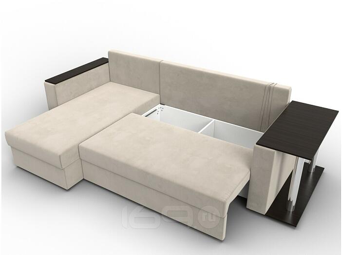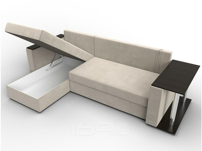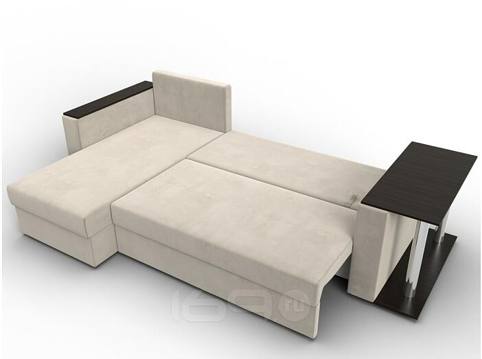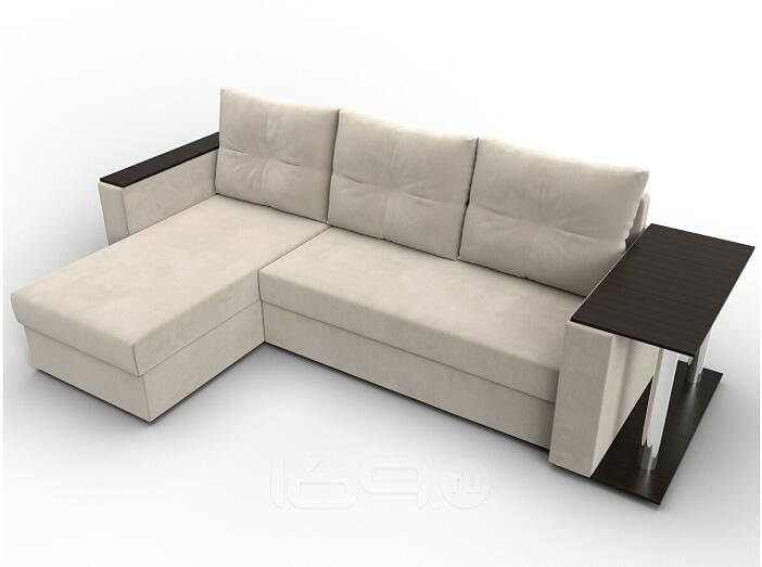 Угловой диван с расположением угла с левой стороны. Внешне напоминает английскую букву L. Механизм трансформации находится в длинной стороне. Модель занимает две стены, можно использовать для зонирования пространства.