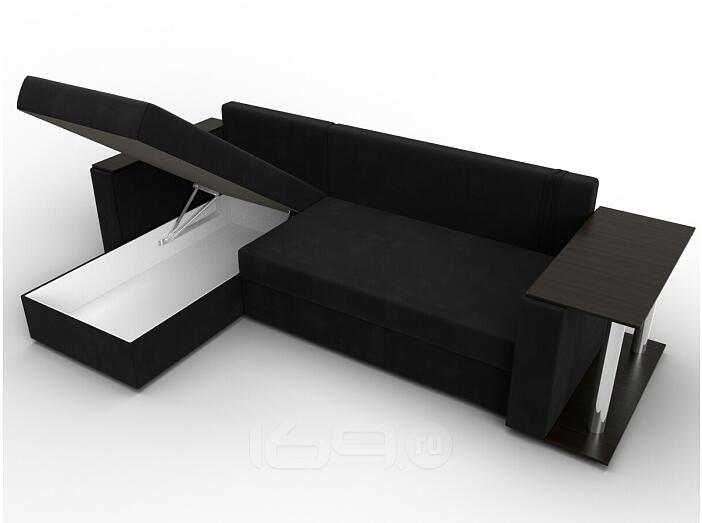Угловой диван с расположением угла с левой стороны. Внешне напоминает английскую букву L. Механизм трансформации находится в длинной стороне. Модель занимает две стены, можно использовать для зонирования пространства.
