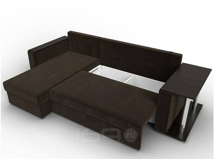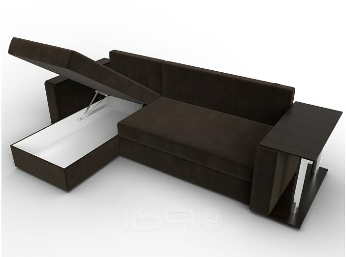 Угловой диван с расположением угла с левой стороны. Внешне напоминает английскую букву L. Механизм трансформации находится в длинной стороне. Модель занимает две стены, можно использовать для зонирования пространства.