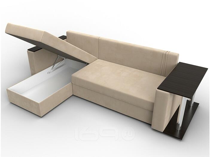 Угловой диван с расположением угла с левой стороны. Внешне напоминает английскую букву L. Механизм трансформации находится в длинной стороне. Модель занимает две стены, можно использовать для зонирования пространства.