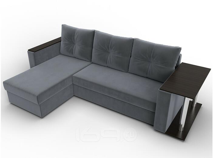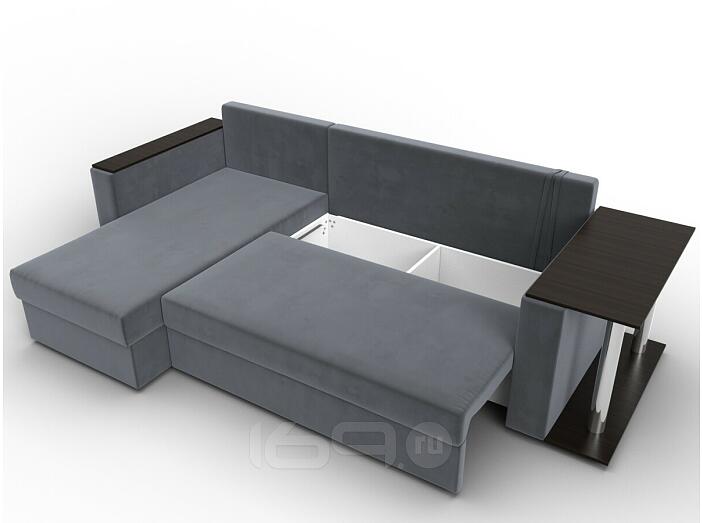 Угловой диван с расположением угла с левой стороны. Внешне напоминает английскую букву L. Механизм трансформации находится в длинной стороне. Модель занимает две стены, можно использовать для зонирования пространства.