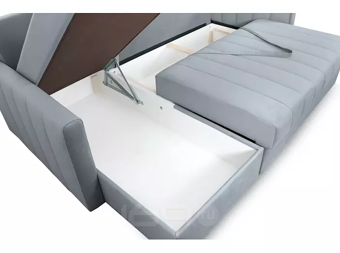 Угловой диван с расположением угла с левой стороны. Внешне напоминает английскую букву L. Механизм трансформации находится в длинной стороне. Модель занимает две стены, можно использовать для зонирования пространства.