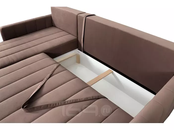 Угловой диван с расположением угла с левой стороны. Внешне напоминает английскую букву L. Механизм трансформации находится в длинной стороне. Модель занимает две стены, можно использовать для зонирования пространства.