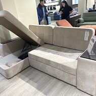Угловой диван с расположением угла с левой стороны. Внешне напоминает английскую букву L. Механизм трансформации находится в длинной стороне. Модель занимает две стены, можно использовать для зонирования пространства.