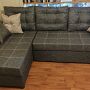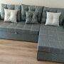 Механизм раскладки: дельфин. Угловой диван легко трансформируется в кровать. Владельцу достаточно лишь выдвинуть нижнюю часть вперед, потянув за скрытую петлю. В образовавшуюся пустоту «выпрыгивает» спальный блок. Механизм достаточно сложен с конструктивной точки зрения. Он состоит из прочных кронштейнов, металлических направляющих и роликов.