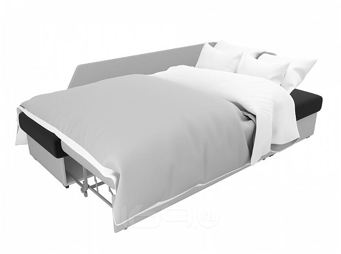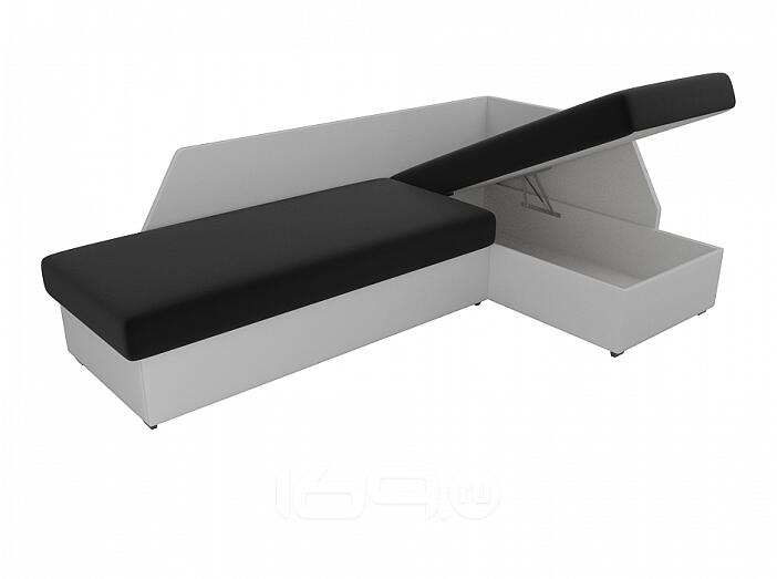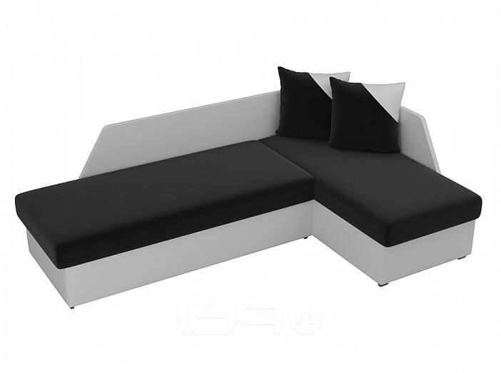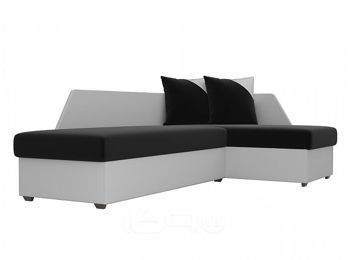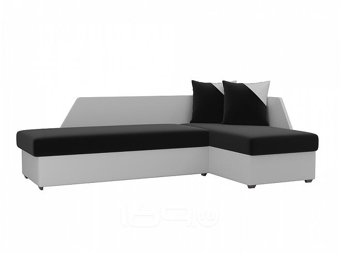 Диван угловой Андора правый Микровельвет Черный Экокожа Белый Дельфин