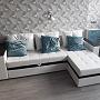 Разместите угол с левой или с правой стороны, как будет удобно именно Вам. Под углом находится вместительная ниша для белья. Обратите внимание на подлокотники дивана, они выполняют роль миниатюрных столиков, подушки и сиденья украшены стяжкой.