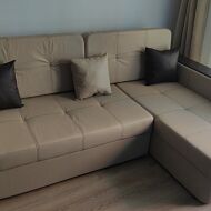 Модель углового дивана с расположением угла справа. Внешне напоминает русскую букву Г. При выборе учитывайте, что угол устанавливается стационарно, переделать его нельзя, поэтому нужно заранее продумать, как диван будет располагаться.