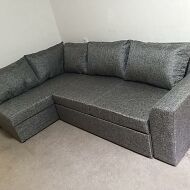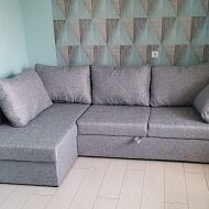 Каркас: ЛДСП. Надежный и прочный материал, изготовленный из древесной стружки. Он выдерживает большие нагрузки, не гниет под воздействием влаги. Конструкция углового дивана не деформируется даже при максимальной нагрузке на поверхность.