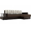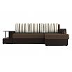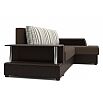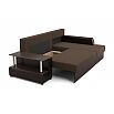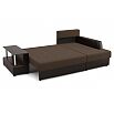 Угловой диван Франк - сдержан и элегантен. Здесь господствуют прямые линии. Материал обивки - искусственная кожа и велюр, для подушек выбран контрастный материал в полоску. Отличительной особенностью является встроенный журнальный столик, у него два яруса, соединенные никелированными опорами. Только представьте, как здорово откинуться на мягкие подушки, вытянув уставшие ножки вдоль сидения, а на столике стоит стакан с холодным коктейлем. Просто сказка! Для трансформации в спальное место используется механизм «еврокнижка» - сидение выдвигается вперед, а спинка опускается в отрывшееся пространство. В дневное время белье и одеяло может храниться в специальном ящике.