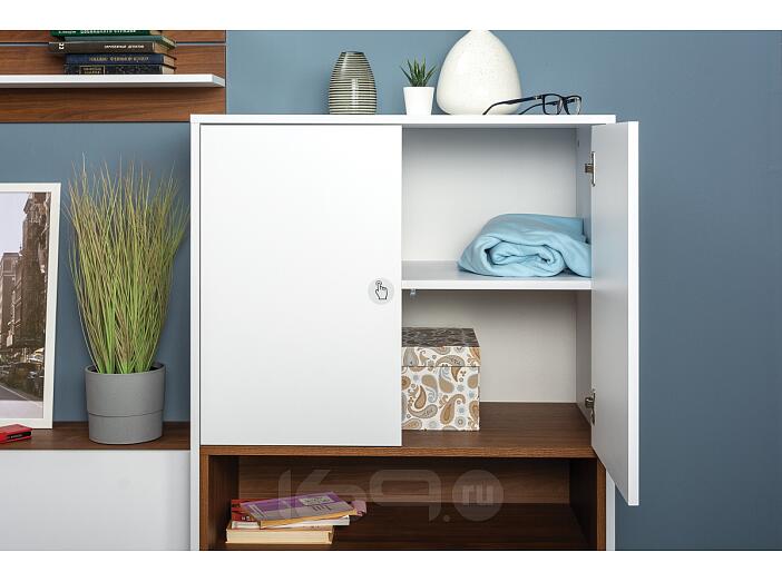 Каркас выполнен из ЛДСП Орех селект каминный, фасады ЛДСП Белый премиум.