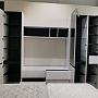 Задняя стенка чёрного цвета эффектно подчеркивает наполнение шкафов.