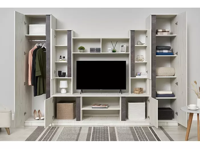 Гостиная Атлантида 5 (Дуб Крафт Белый/Бетон Темный, Дуб Крафт Белый)