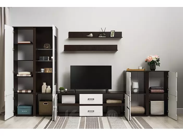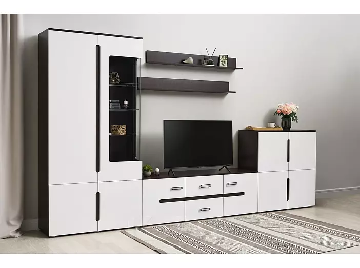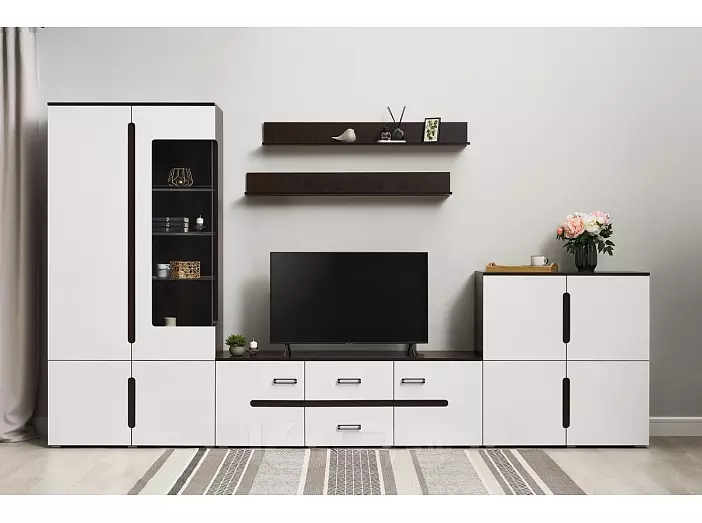 Гостиная Ким Вариант №1 (Белый глянец холодный, венге)