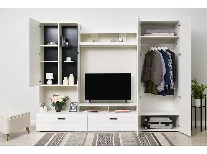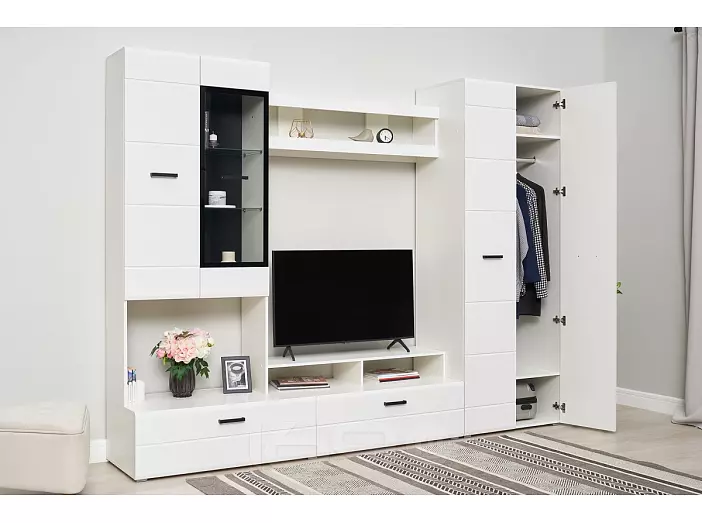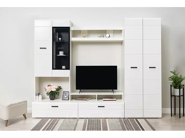 Гостиная Нэнси NEW Вариант №4 (Белый глянец, Белый)