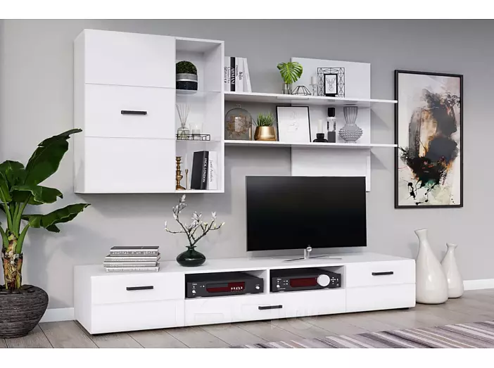 Гостиная Нэнси NEW Вариант №5 (Белый глянец, Белый)