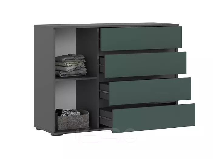 Норд Комод 1 дверь 4 ящика (1200) (Изумрудный (КРОМКА ГРАФИТ), Графит)
