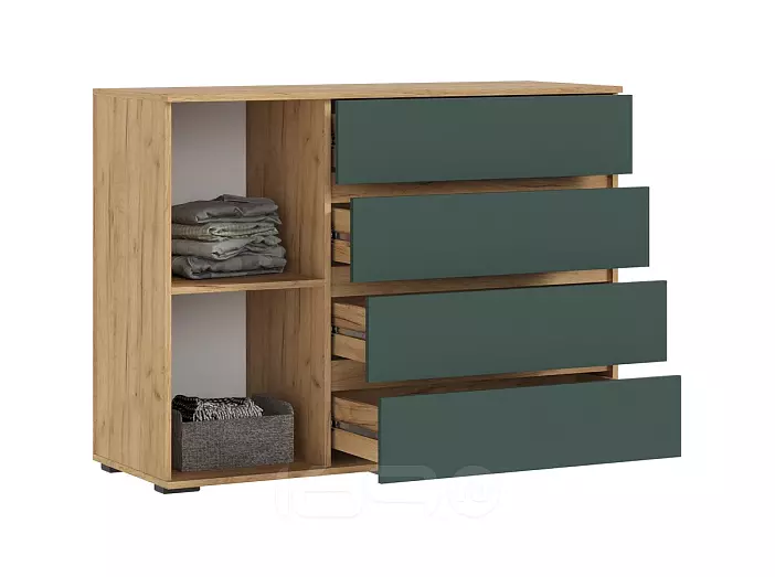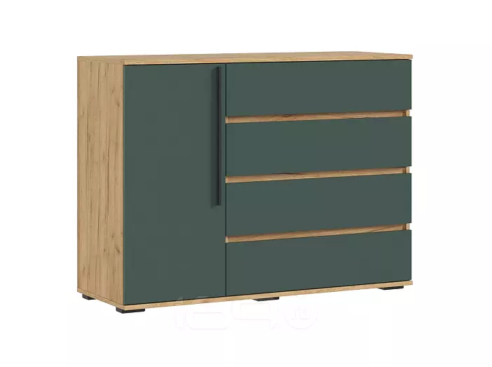 Норд Комод 1 дверь 4 ящика (1200) (Изумрудный (КРОМКА ИЗУМРУД), Дуб Крафт (КРОМКА ДУБ КРАФТ))