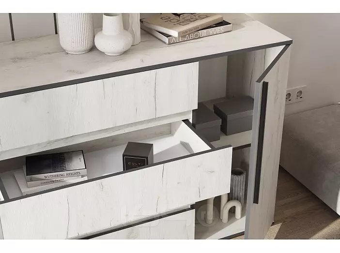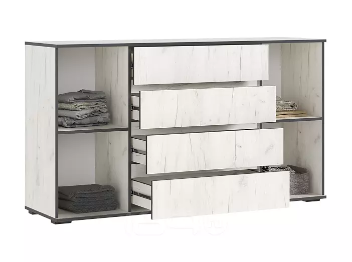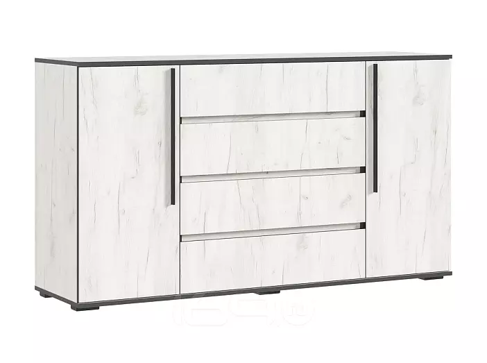 Норд Комод 2 двери 4 ящика (1600) (Дуб Крафт Белый, Дуб Крафт Белый)