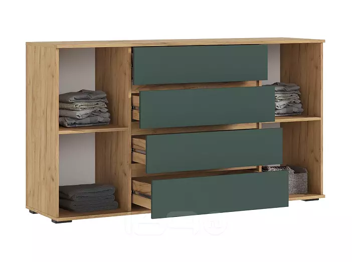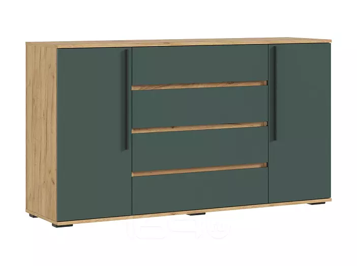 Норд Комод 2 двери 4 ящика (1600) (Изумрудный (КРОМКА ИЗУМРУД), Дуб Крафт (КРОМКА ДУБ КРАФТ))