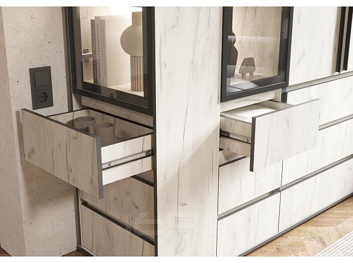 Норд Пенал-стекло (400) с ящиками (Дуб Крафт Белый, Дуб Крафт Белый)