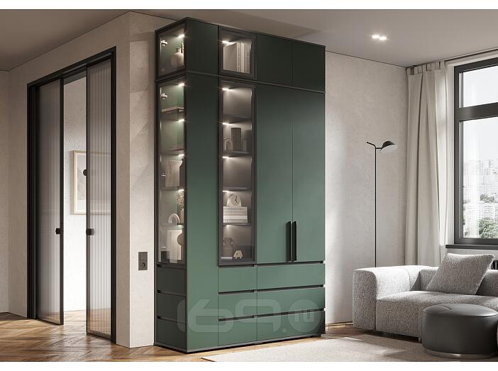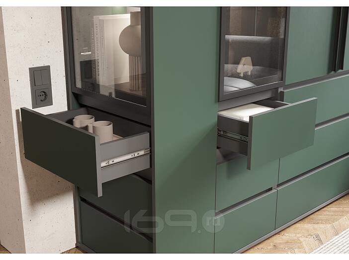 Норд Пенал-стекло (400) с ящиками (Изумрудный (КРОМКА ГРАФИТ), Графит)
