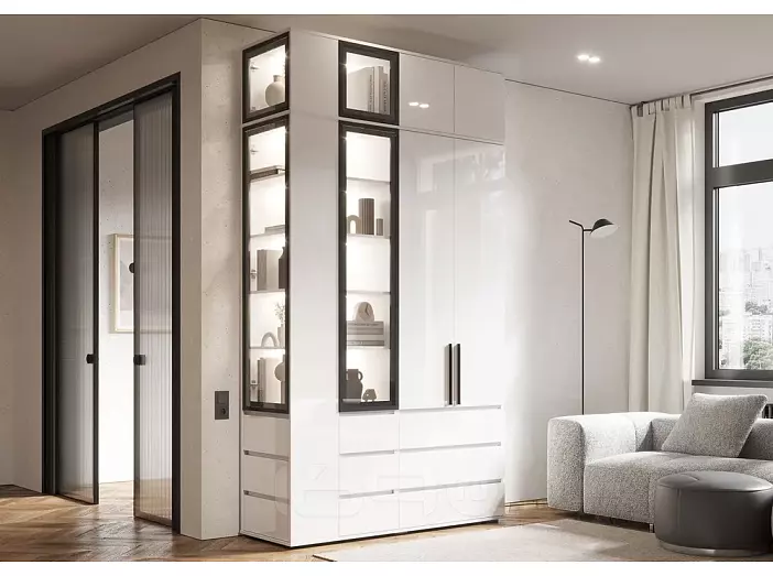 Распашные двери - стандартная конструкция для шкафа. Состоит из полотна и крепежных деталей, с помощью которых монтируется на боковую стенку шкафа. В качестве крепежа используют металлические мебельные петли. Как правило, количество дверных полотен соответствует количеству секций шкафа.