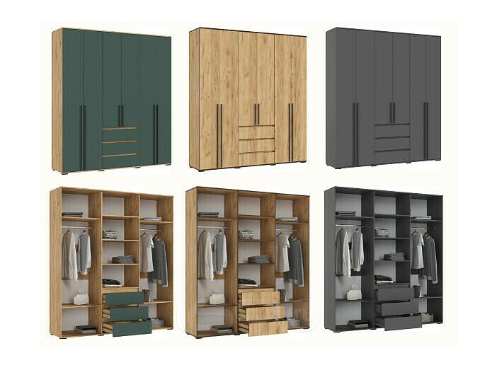 Распашные двери - стандартная конструкция для шкафа. Состоит из полотна и крепежных деталей, с помощью которых монтируется на боковую стенку шкафа. В качестве крепежа используют металлические мебельные петли. Как правило, количество дверных полотен соответствует количеству секций шкафа.