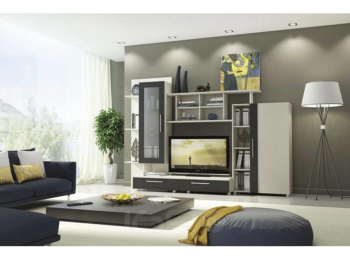 Современные материалы, надежная фурнитура, сопряженная с высокой функциональностью, база под ТВ и вместительный шкаф делают стенку «Франк» одним из лидеров продаж в данном сегменте.