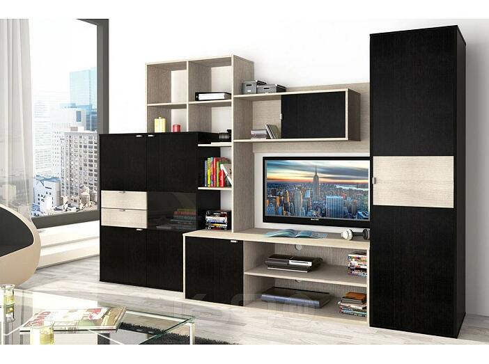 Стенка "Грейс" создана для тех, кто хочет подчеркнуть свою индивидуальность в интерьере. В ней есть все необходимое, чтобы раз и навсегда решить вопрос с хранением вещей: шкаф для одежды, множество полок для аксессуаров и книг, стеклянная витрина для посуды, тумба под ТВ и видео аппаратуры. А элегантное сочетание светлого и темного материалов гармонично впишется в интерьер современной гостиной.