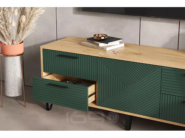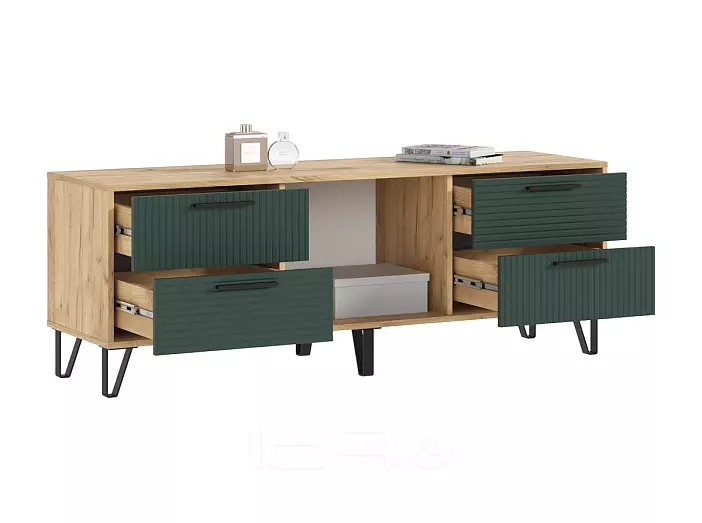 Флэш Тумба ТВ (1500) (Браш Мени Грин, Дуб Крафт)