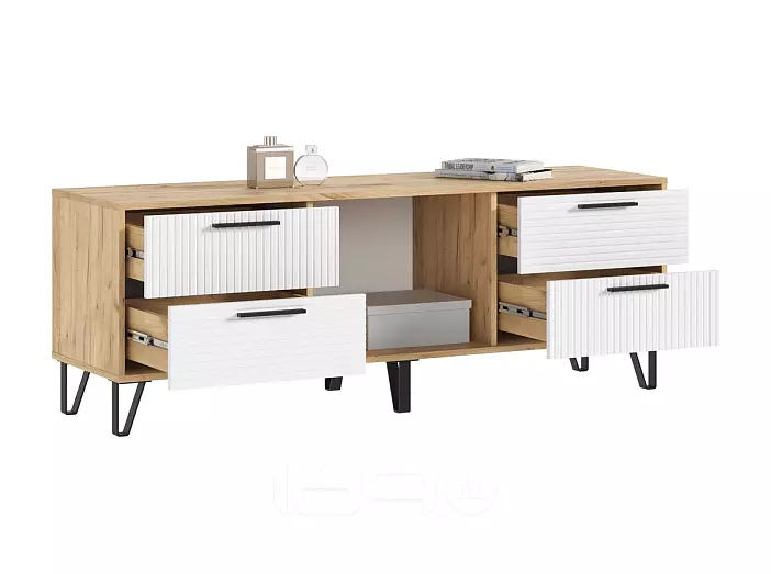 Флэш Тумба ТВ (1500) (Браш Вайт, Дуб Крафт)