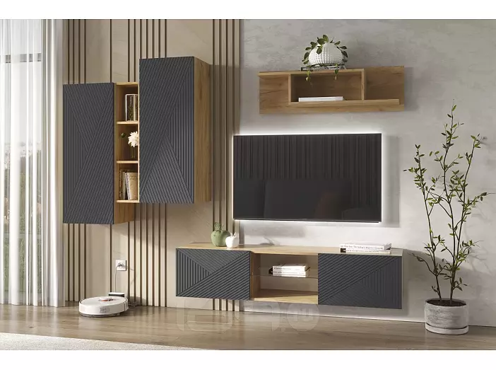 Флэш Тумба ТВ подвесная (Браш Графит, Дуб Крафт)