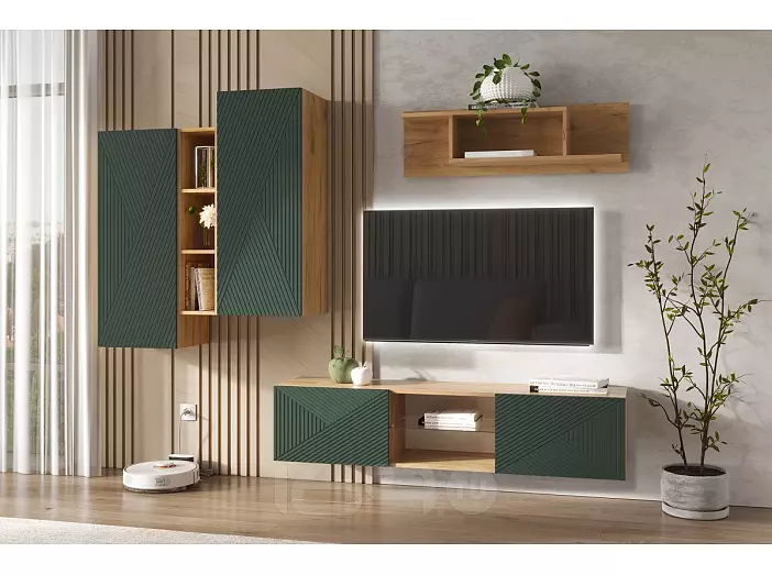 Флэш Тумба ТВ подвесная (Браш Мени Грин, Дуб Крафт)