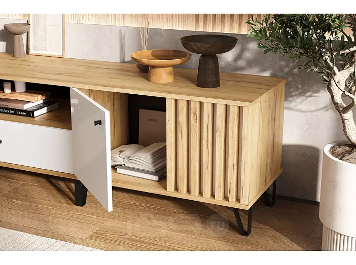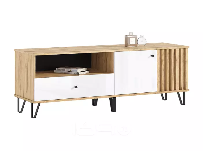 Роджина Тумба ТВ (1500) (Белый глянец, Дуб Крафт)