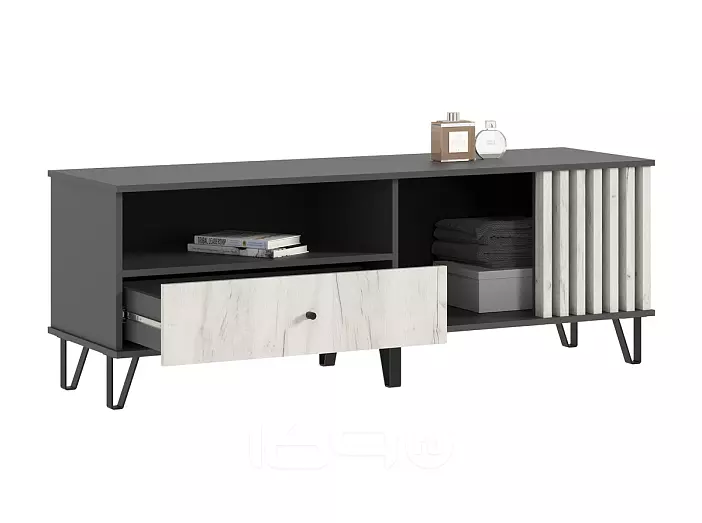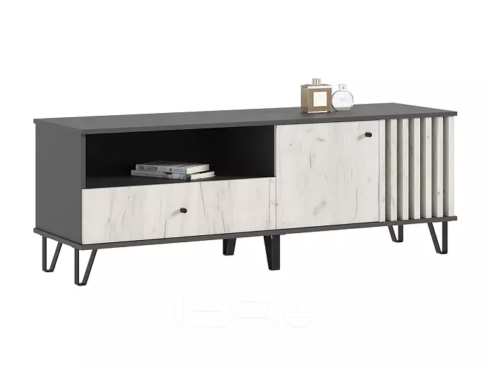 Роджина Тумба ТВ (1500) (Дуб Крафт Белый, Графит)