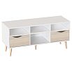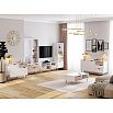 Тумба под ТВ "Соната" сформирует композиционный центр ТВ-зоны и позволит сохранить больше свободного пространства в гостиной. На поверхности модуля можно расположить телевизор с диагональю до 55-60 дюймов. Упорядочить хранение сопутствующих аксессуаров и компонентов домашнего кинотеатра помогут выдвижные ящики с фасадами, декорированными вырезными ручками в цвете «Дуб Сонома», и открытые ниши.