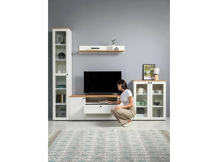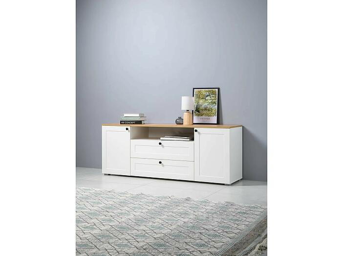 Остин Тумба под ТВ 16.47 Белый шагрень, Дуб Золотой Крафт
