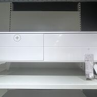 Все видимые части тумбы выполнены в белом глянцевом декоре, который делает тумбу эффектной и простой.