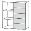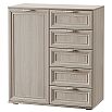 Комод Бьянка 1457 – вместительный вариант для небольшой комнаты. В конструкции 5 выдвижных ящиков, поставленных на роликовые направляющие. За дверцей спрятали 3 полки. Каркас собрали из прочных плит ЛДСП. Накладки и профиль сделали из МДФ, наполнение – из КМДФ. Комод Бьянка выполнили в модном оттенке Ясень Анкор светлый. Цвет напоминает кофе, сильно разбавленный молоком. Ламинированное покрытие мебели полностью повторяет узор древесины. Заметные прожилки на поверхности придают оформлению особый шарм.