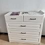 Комод Ливерпуль – вместительная мебель, которую используют для хранения белья и одежды. Пять ящиков полного выдвижения установили на прочные шариковые направляющие. Каркас конструкции собрали из ЛДСП, фасады – из МДФ. Ручки сделали из металла, имитирующего старую бронзу. Стиль комода Ливерпуль – колониальный. Ламинированное покрытие выполнили в двух вариантах цвета Ясень. Простоту лаконичного белого оттенка разбавляют заметное тиснение (поры дерева). Нежный ванильный тон привнесет в дизайн свежие нотки.