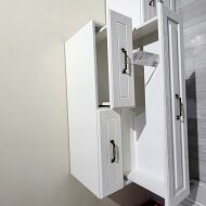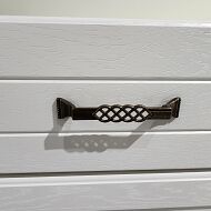 Комод Ливерпуль – вместительная мебель, которую используют для хранения белья и одежды. Пять ящиков полного выдвижения установили на прочные шариковые направляющие. Каркас конструкции собрали из ЛДСП, фасады – из МДФ. Ручки сделали из металла, имитирующего старую бронзу. Стиль комода Ливерпуль – колониальный. Ламинированное покрытие выполнили в двух вариантах цвета Ясень. Простоту лаконичного белого оттенка разбавляют заметное тиснение (поры дерева). Нежный ванильный тон привнесет в дизайн свежие нотки.