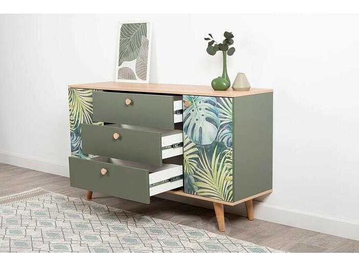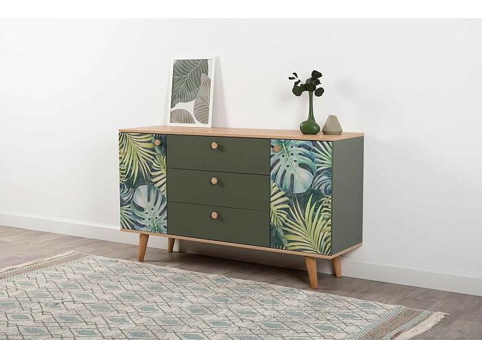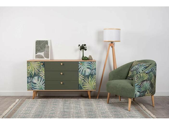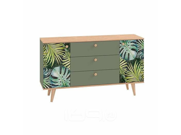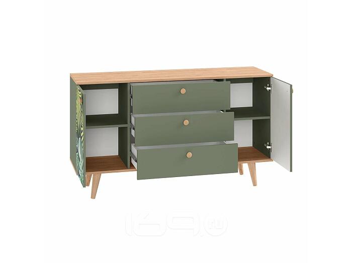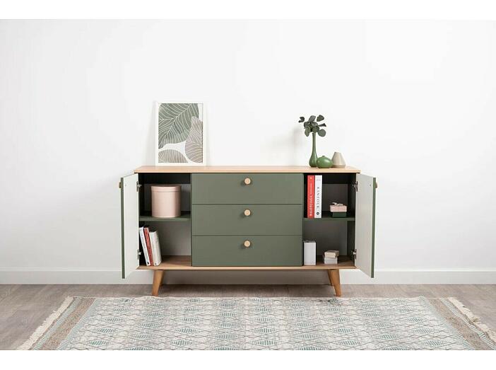 Маттиас Комод 16.245 Дымчатый Зеленый K521, Гикори Рокфорд Натуральный KO86 PW, Белый PE шагрень