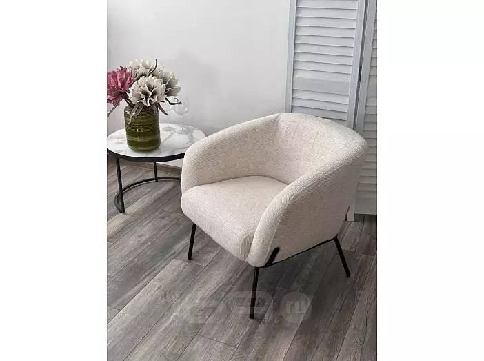 Кресло HARPER Modica-040 бежево-белый, ткань / черный каркас 74 x 73 x 77 см