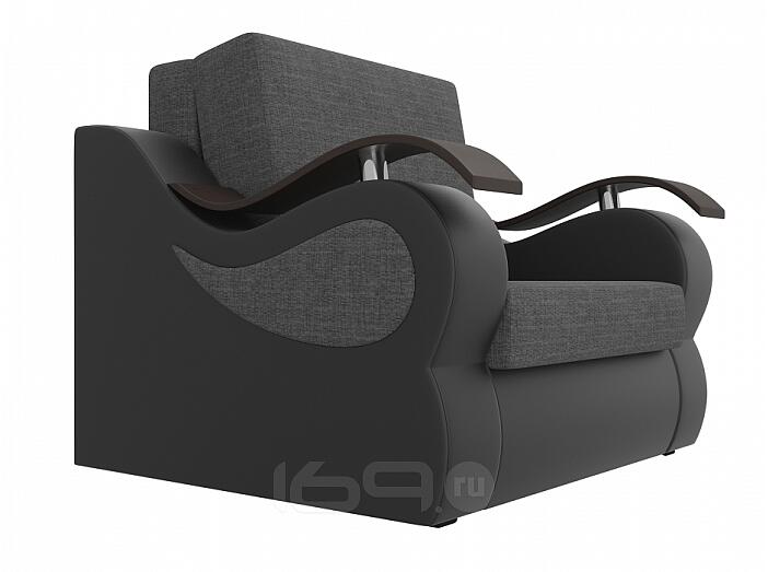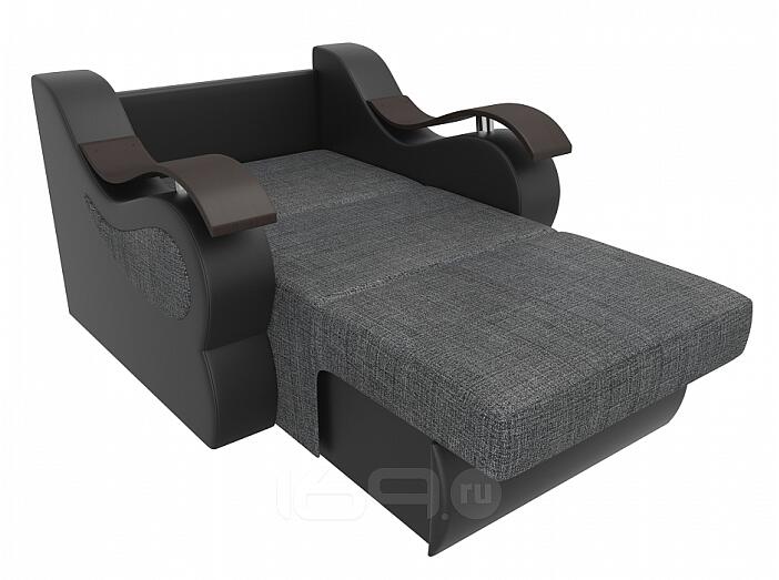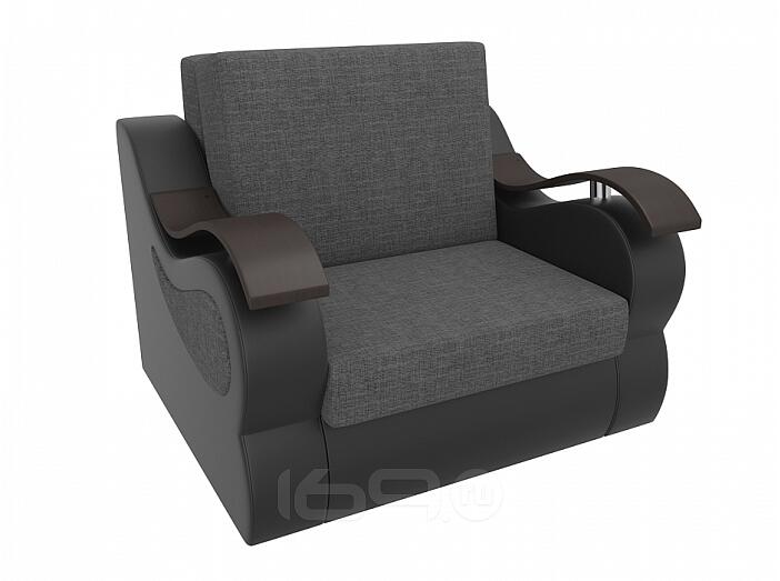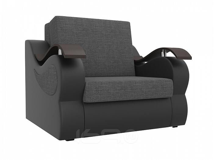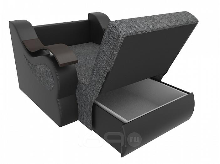 Кресло-кровать Меркурий Рогожка Серый Экокожа Черный с бельевым ящиком 92 x 93 x 110 см см