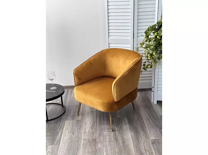 Кресло MUSSELS BLUVEL-68 желтый, велюр / золотой каркас 76 x 79 x 66 см