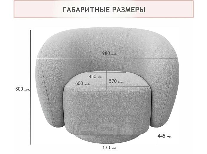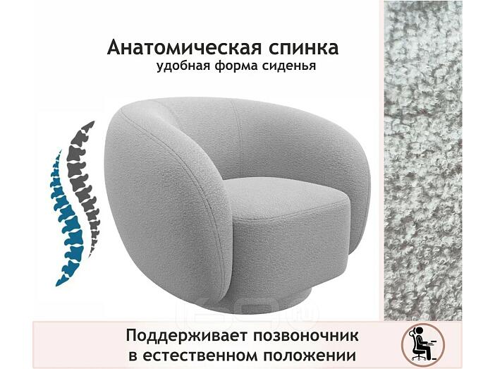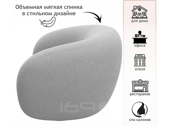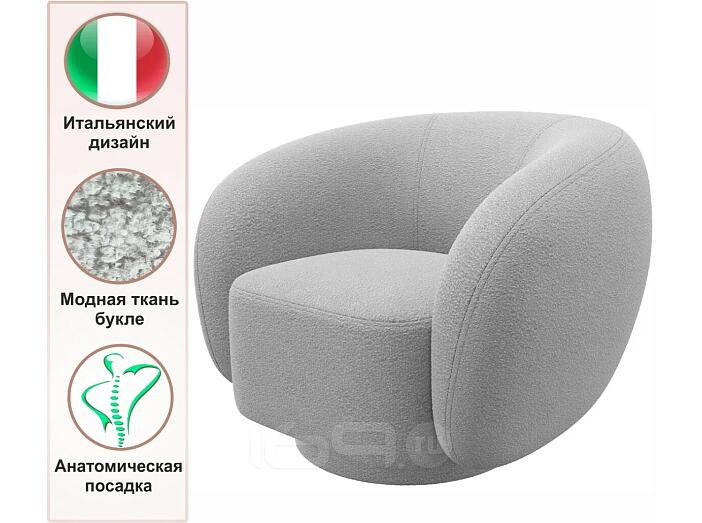 Кресло мягкое дизайнерское Plushe букле светло-серый 98 x 80 x 97 см