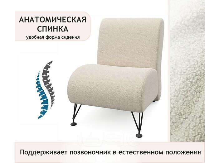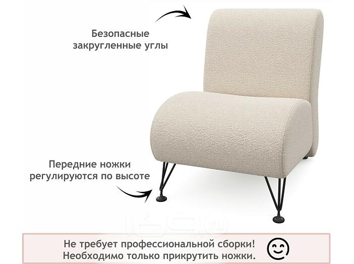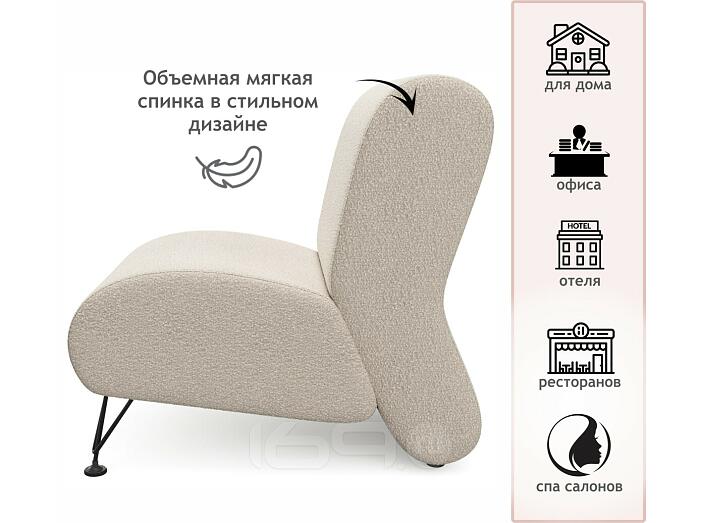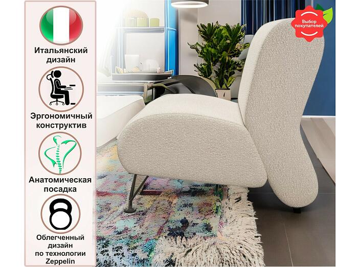 Мягкое дизайнерское кресло Pati букле айвори 54 x 81 см