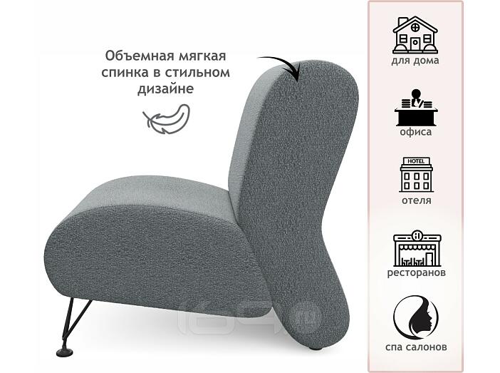 Мягкое дизайнерское кресло Pati букле базальт 54 x 81 см